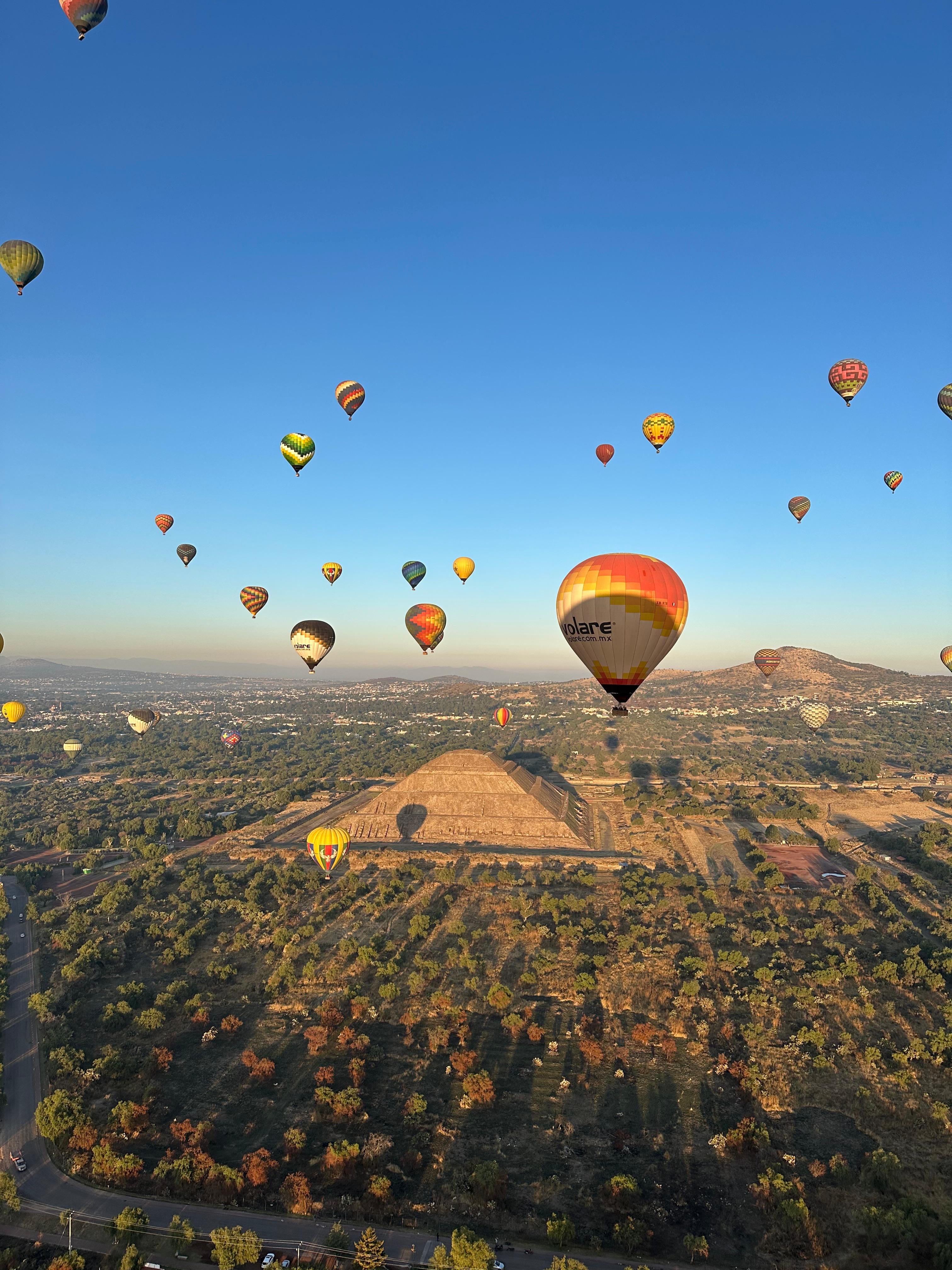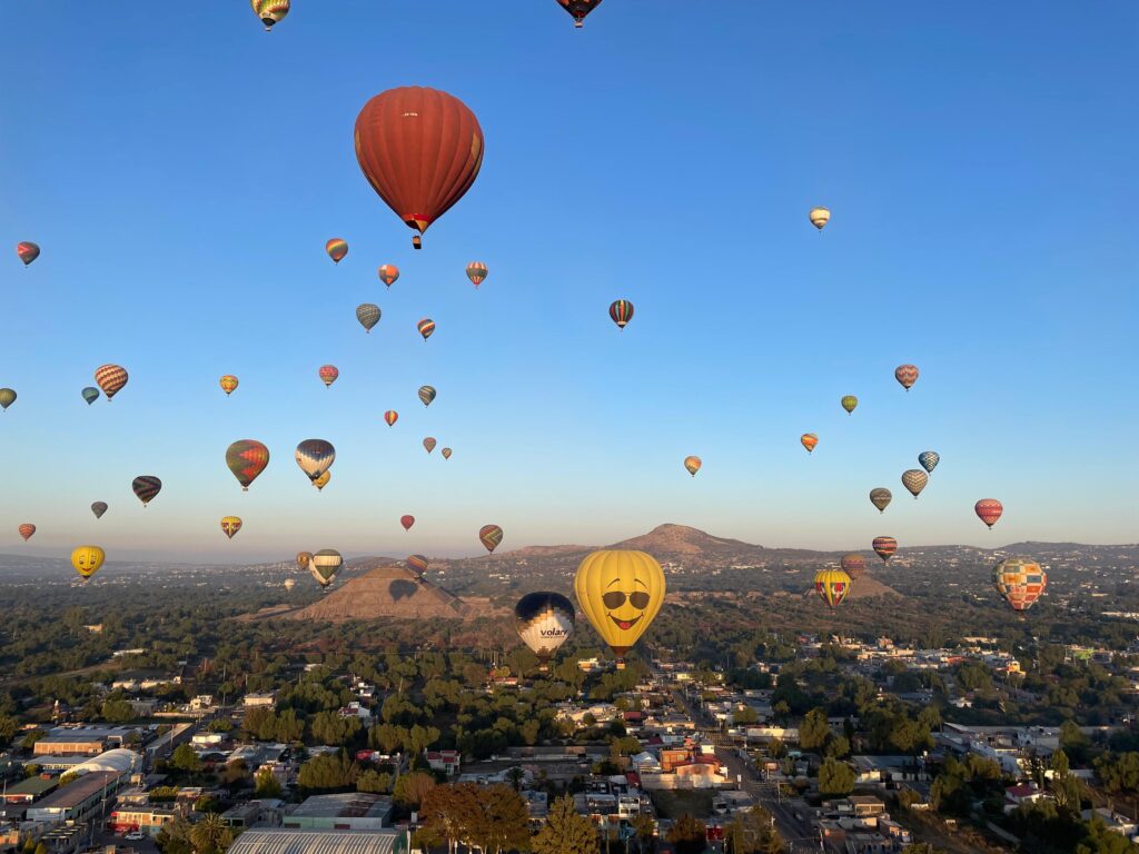 De eerste volledige dag in Mexico-Stad trappen we meteen af met een onvergetelijk avontuur, namelijk een ballonvaart over de vallei van Teotihuacán.