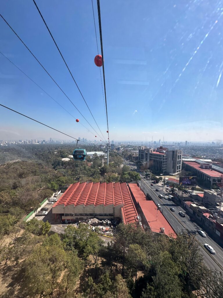 Tijdens de tour maakten we ook gebruik van een bijzonder vervoermiddel: de kabelbaan van Mexico-Stad. Deze nieuwste vorm van openbaar vervoer in Mexico-Stad biedt een prachtig uitzicht over de stad. De kabelbaan is niet alleen bedoeld voor toeristen, maar heeft als voornaamste doel om de buitenwijken te verbinden met het centrum. Hierdoor kunnen inwoners sneller reizen en worden verkeersopstoppingen verminderd.