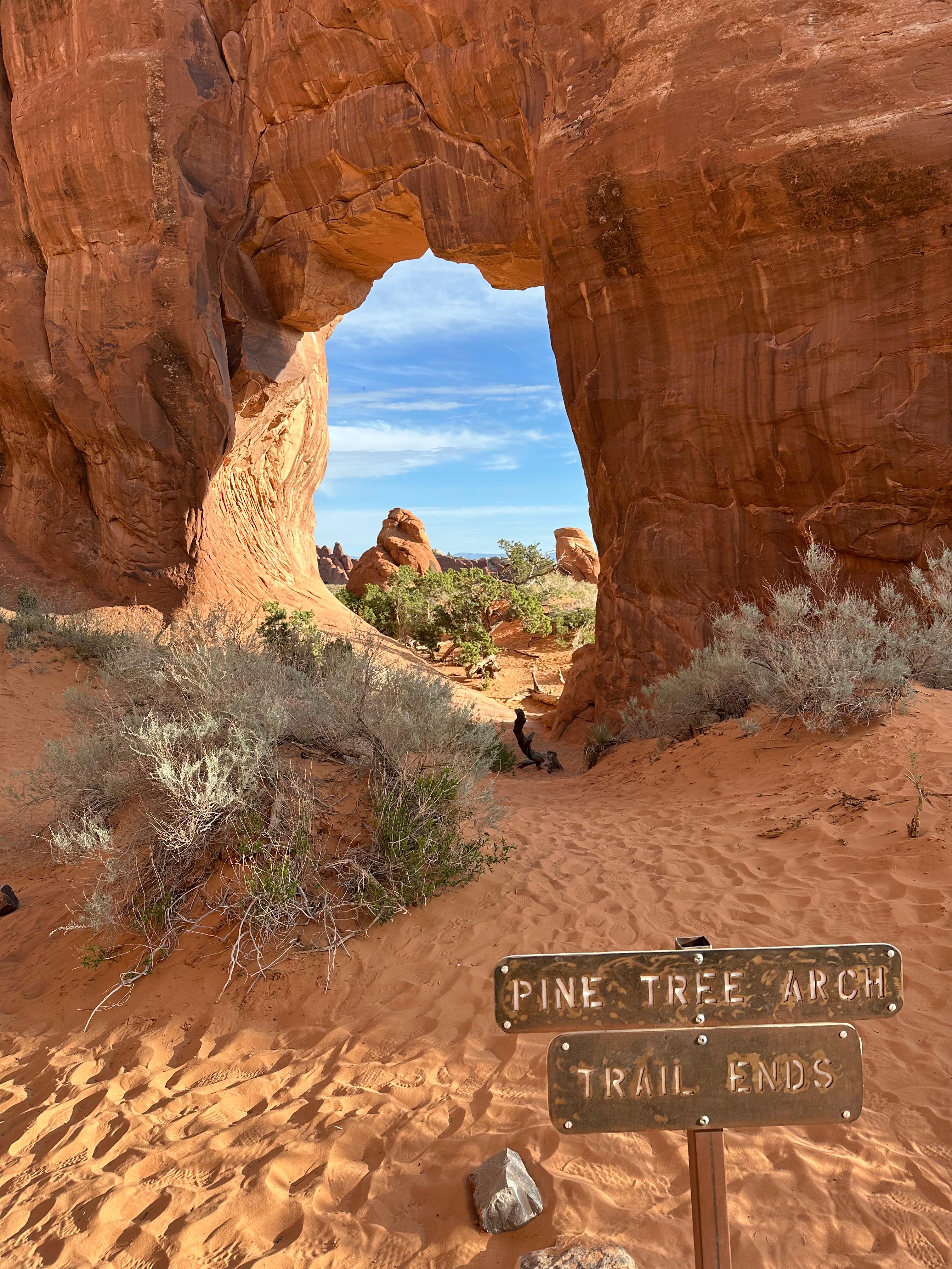 Ook als je gebrek hebt aan tijd of geen zin hebt in een lange hike, is dit gedeelte van het zeker de moeite waard. Sla deze dus zeker niet over. In een gemakkelijke lus van ongeveer 3 kilometer kun je namelijk al Tunnel Arch, Pine Tree Arch en Landscape Arch bezoeken.