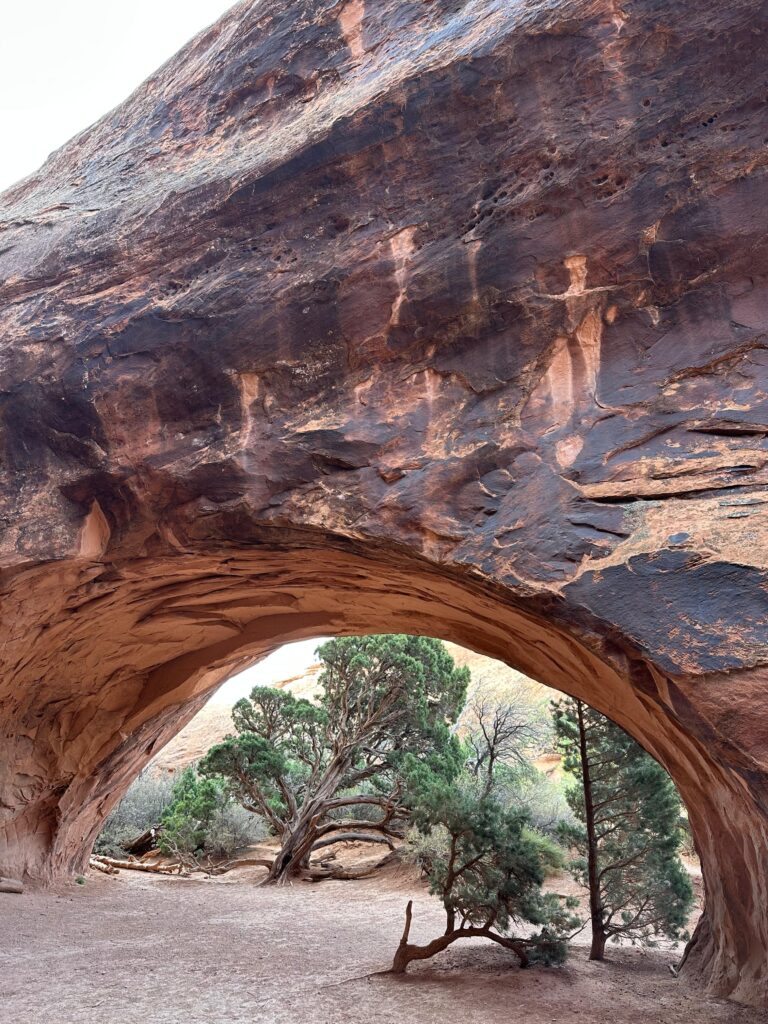 Begin met een kleine omweg naar Tunnel Arch, waar je vanaf een afstand de eerste arches kunt bewonderen. Loop vervolgens door naar Pintetree Arch, waar je veel dichter bij de arch kunt komen en, als het rustig is, mooie foto’s kan maken in de arch zelf.