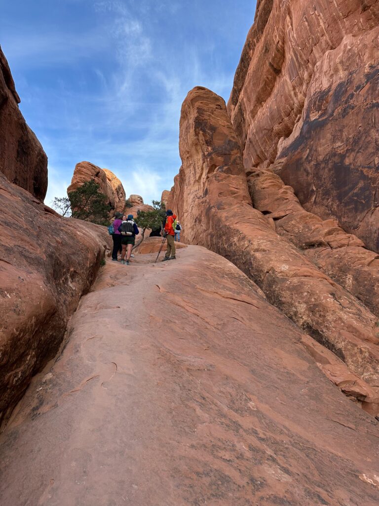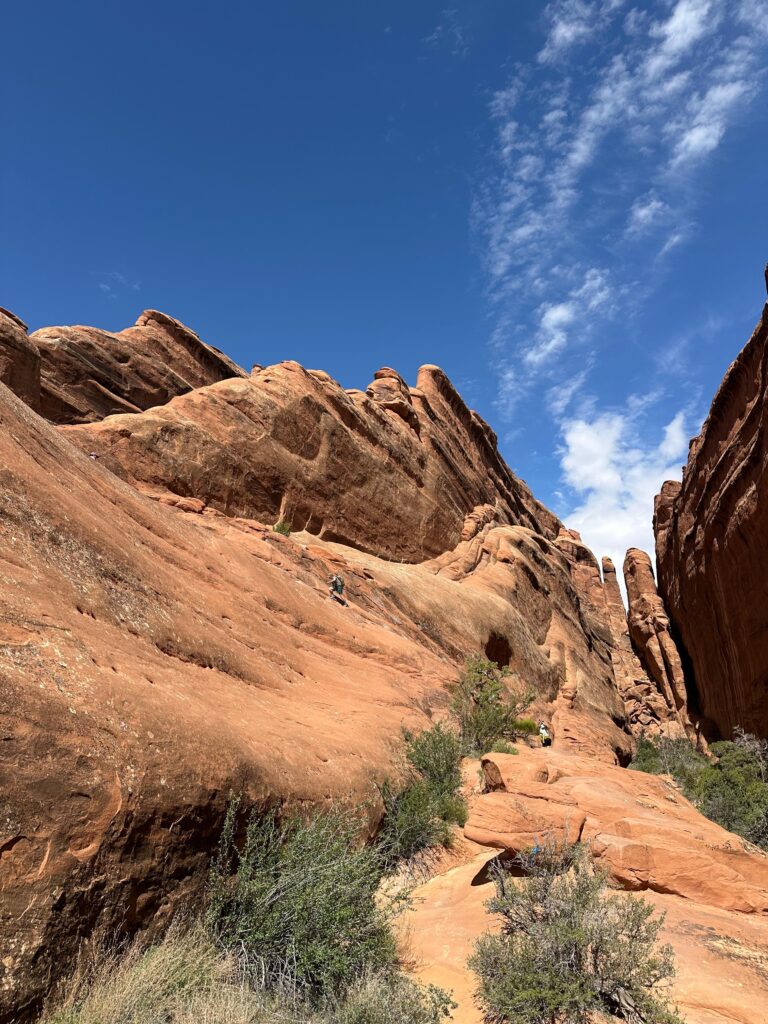 Vanaf Landscape Arch is het mogelijk om om te keren. Óf begin met het leukste stuk van de hike en hike verder via een steile rotswand omhoog richting de andere arches.