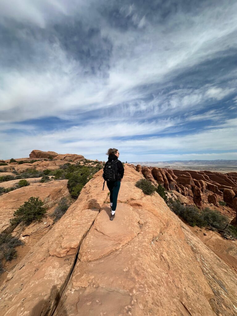 De Devils Garden Trail is een van de mooiste hikes in Arches National Park. De volledige route is ongeveer 12 kilometer lang en is op z’n minst uitdagend te noemen. Waarom? Tijdens de hike moet je op verschillende plekken steile rotswanden beklimmen en loop je langs en over spectaculaire rotswanden met diepe afgronden.
