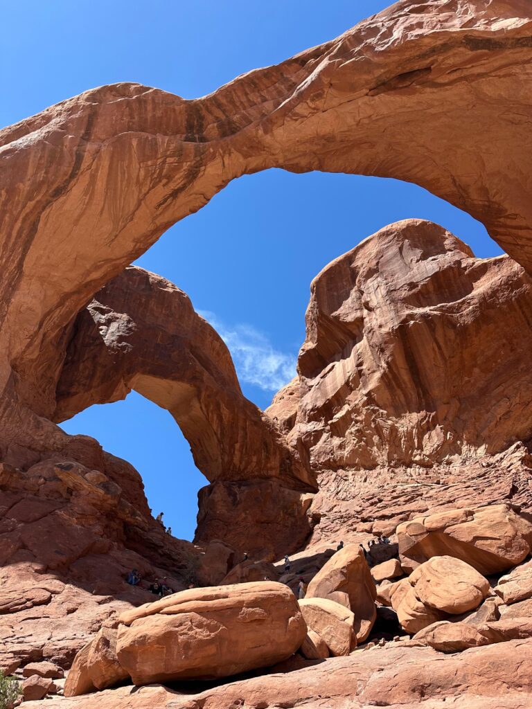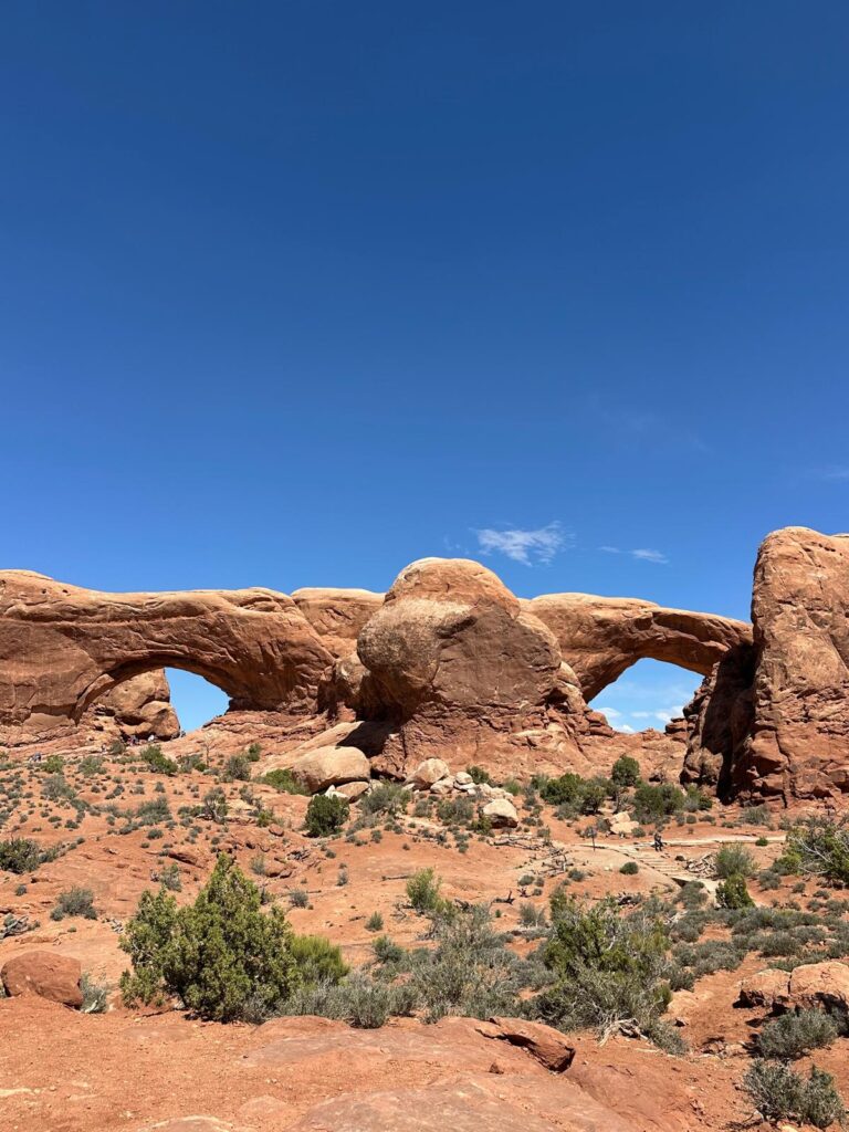 Eenmaal terug op het hoofdpad kan je de route vervolgen richting de indrukwekkende Double O Arch. Een gigantische, dubbele rotsboog.
