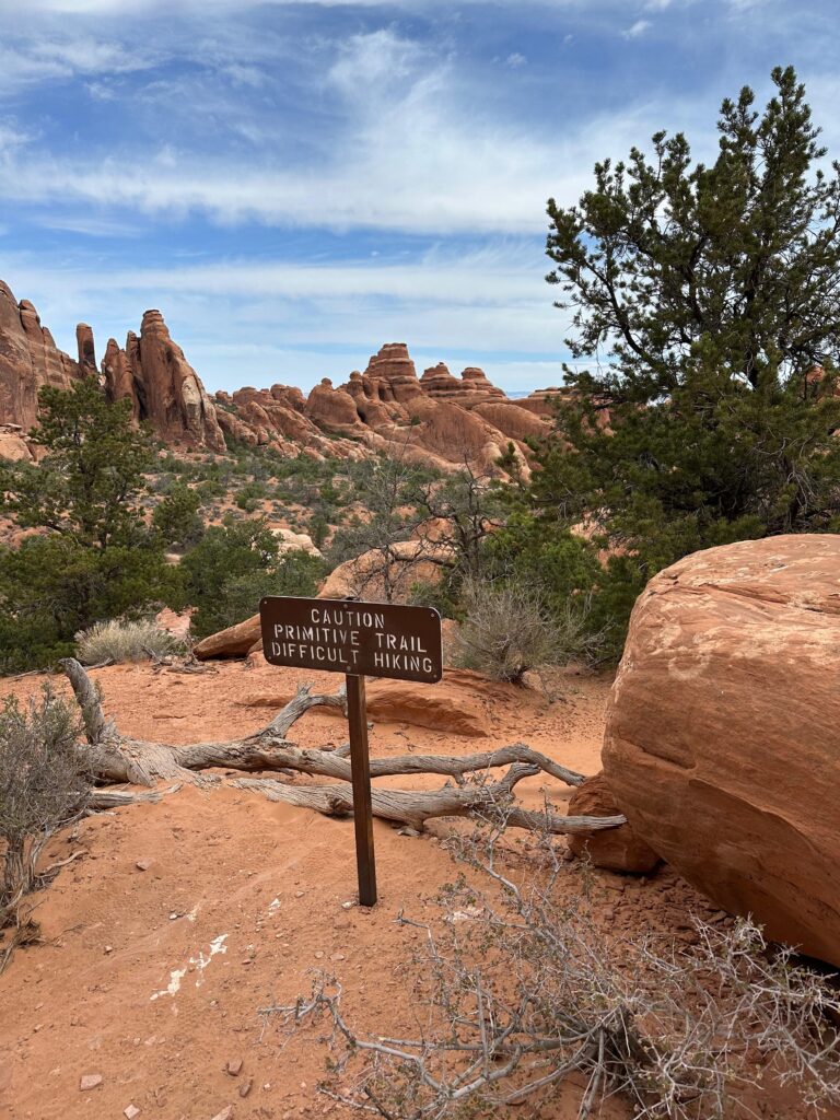Zelf boekten wij het tijdslot van 07:00 tot 08:00 en reden gelijk door naar de parkeerplaats bij het startpunt van de Devils Garden Trail.